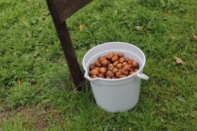 Unser erster Step ist Ensch. Hier sammelt Manni noch einen ganzen Eimer Walnüsse.